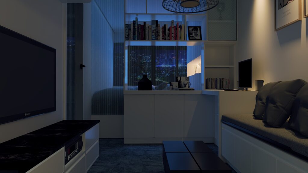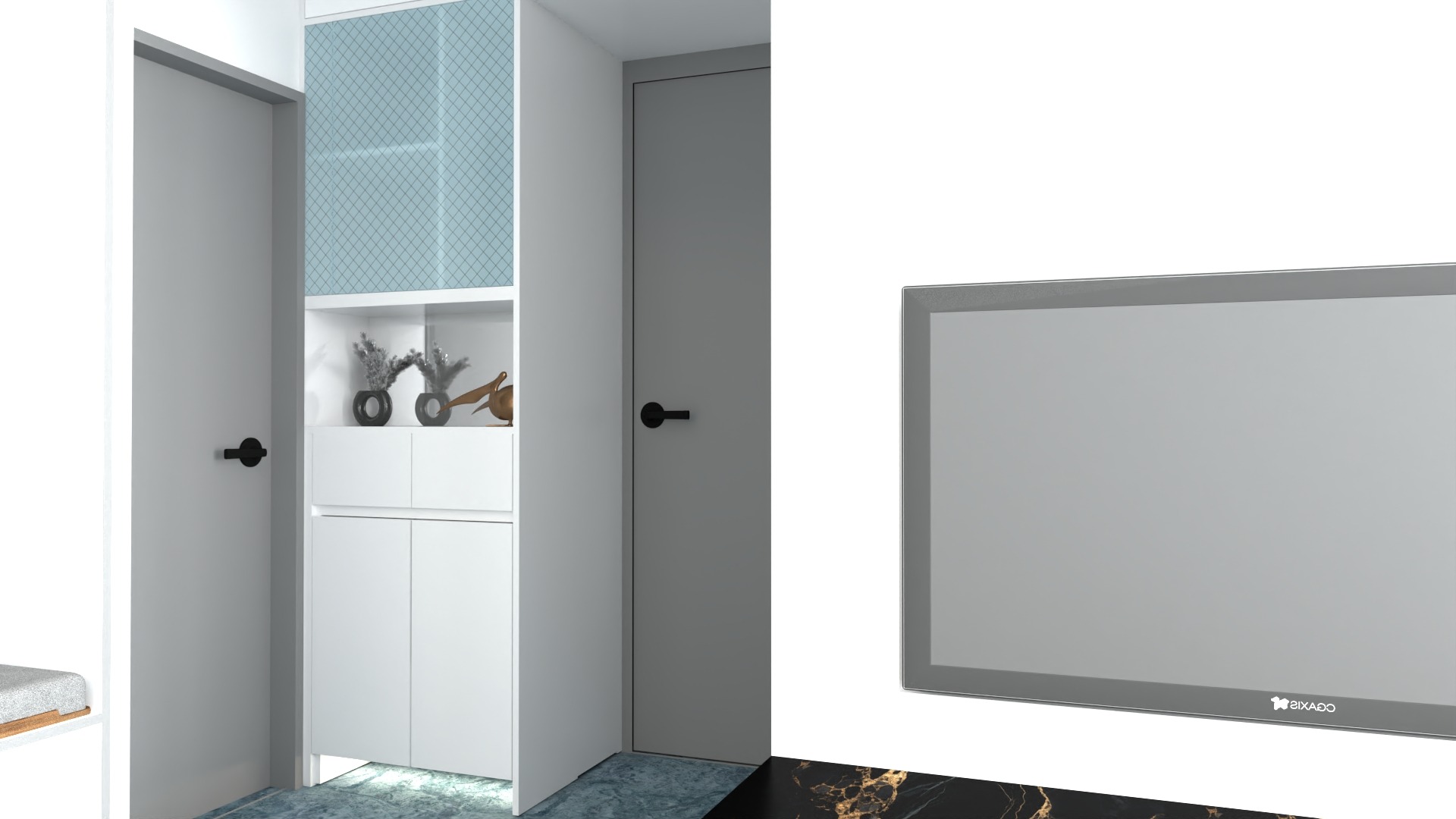 本單位設計特別加入 720° 全景漫遊渲染,用戶可透過滑鼠或觸控自由旋轉畫面,點擊畫面中各個熱點進入不同房間,完整體驗每個空間的佈局與設計細節。